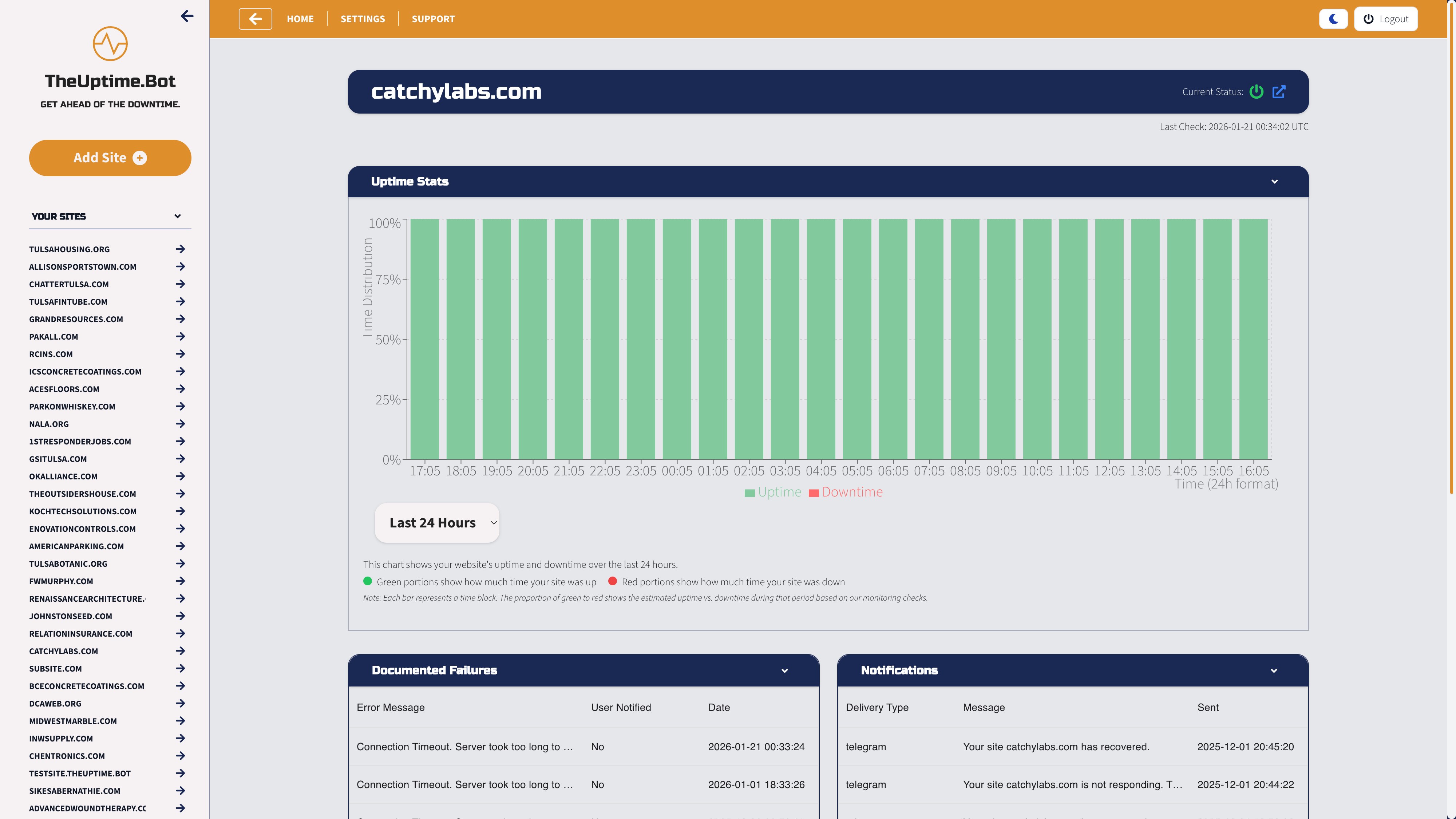 We developed TheUptime.Bot, a powerful website and application uptime monitoring platform. Built with React for a fast, responsive frontend and PHP on the backend, the tool continuously checks websites and alerts users instantly when downtime occurs — helping them stay ahead of issues and minimize disruptions.