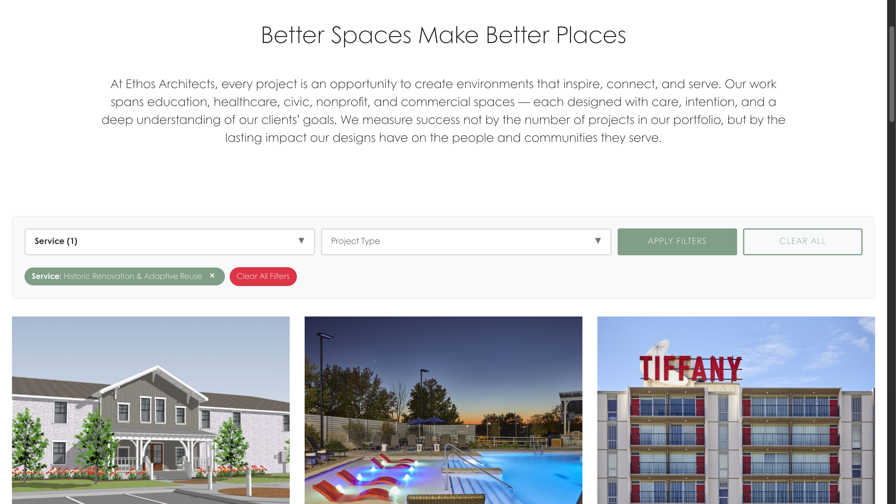 For Ethos Architects, we spearheaded a comprehensive rebrand, evolving their digital presence to reflect decades of purposeful design that enriches communities and elevates lives. This Tulsa-based firm, with its unchanged leadership and passion for client partnerships, specializes in architectural, interior, and engineering solutions across education, healthcare, civic, nonprofit, and commercial sectors. Our custom redesign delivers a modern, responsive platform with immersive project showcases, intuitive navigation, and integrated service overviews to highlight their innovative impact—from community-focused civic spaces to transformative healthcare environments. Enhanced with SEO optimization, contact integrations, and mobile-first accessibility, the site now embodies their ethos of quality and collaboration, boosting engagement and client connections effortlessly.